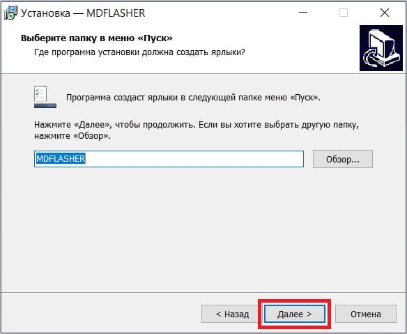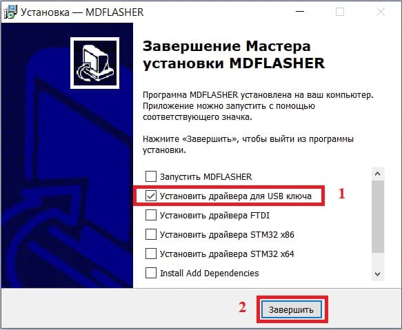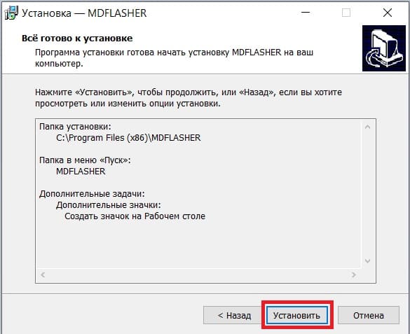 После этого установка программы MDFlasher и драйверов считается завершенной.