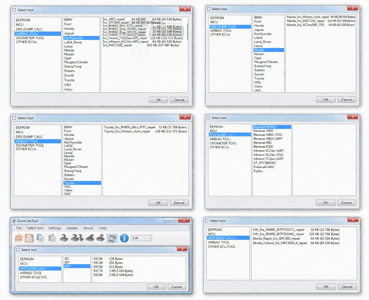GromCalcTool SE FULL KIT — это многофункциональный программатор для специалистов, которые занимаются ремонтом и обслуживанием автомобильной электроники. Прибор подходит для работы с ЭБУ, SRS/Airbag, иммобилайзерами, приборными панелями, а также с различными типами памяти и микроконтроллеров.